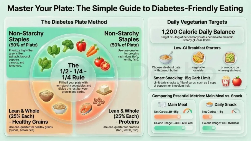 A diabetes mellitus diet chart is a structured nutritional plan that prioritizes low-glycemic index (GI) foods, high fiber, and balanced macronutrients to maintain stable blood glucose. For Indian patients, this typically involves a plate method featuring 50% non-starchy vegetables, 25% complex carbohydrates like millets, and 25% lean proteins such as lentils or eggs, adhering to 2024 ICMR-NIN guidelines.