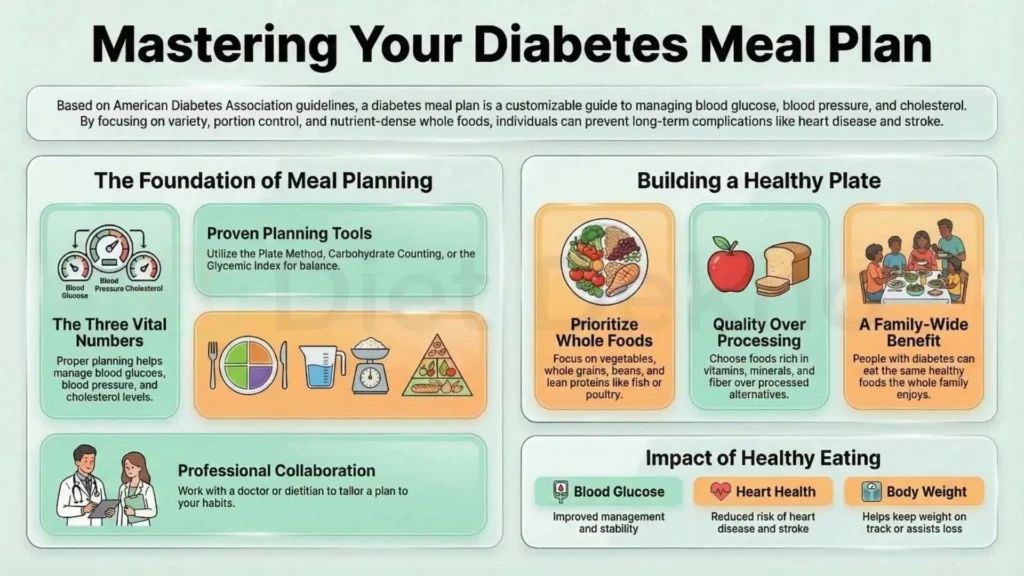 A diabetic diet pdf is a structured meal planning resource that focuses on low glycemic index foods, fiber rich Indian grains, and portion control to stabilize blood glucose. By following a plan that prioritizes 50% whole grains and 400g of daily vegetables, you can reduce HbA1c levels and manage insulin resistance effectively.