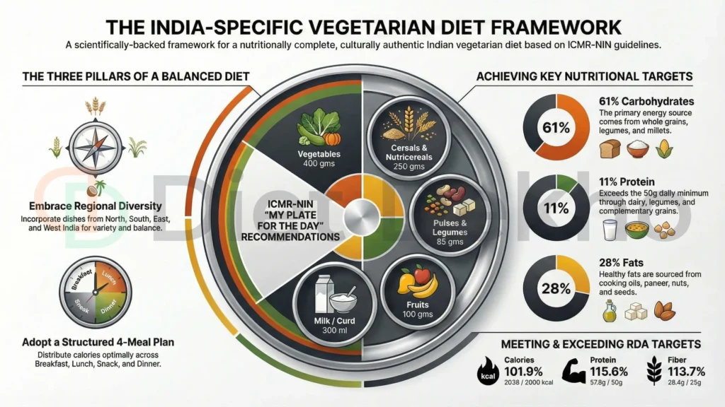 The vegetarian diet plan for weight loss is a high-protein strategy tailored for those who do not consume meat or eggs. It focuses on plant-based powerhouses like soy chunks, which offer 52g of protein per 100g, and pulses like masoor and moong dal. For the Indian vegetarian, maintaining muscle mass is key to keeping the metabolism active during weight loss. This plan balances these proteins with complex carbohydrates like bajra or jowar to ensure satiety.