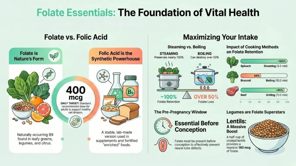 Research shows that different cooking methods have a huge impact on folate retention. Open-lid cooking is the least effective. It allows heat to escape and exposes the food to oxygen for too long. This accelerates the breakdown of B-vitamins.