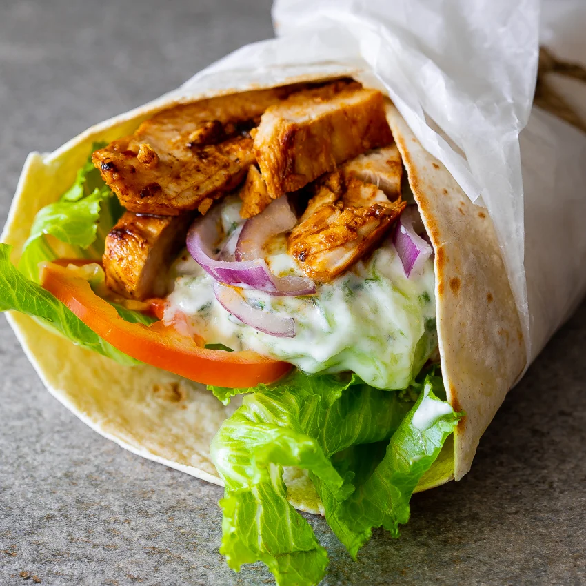 - Spread hung curd or light mayo on each roti. Add lettuce, onions, tomatoes, and grilled chicken pieces.