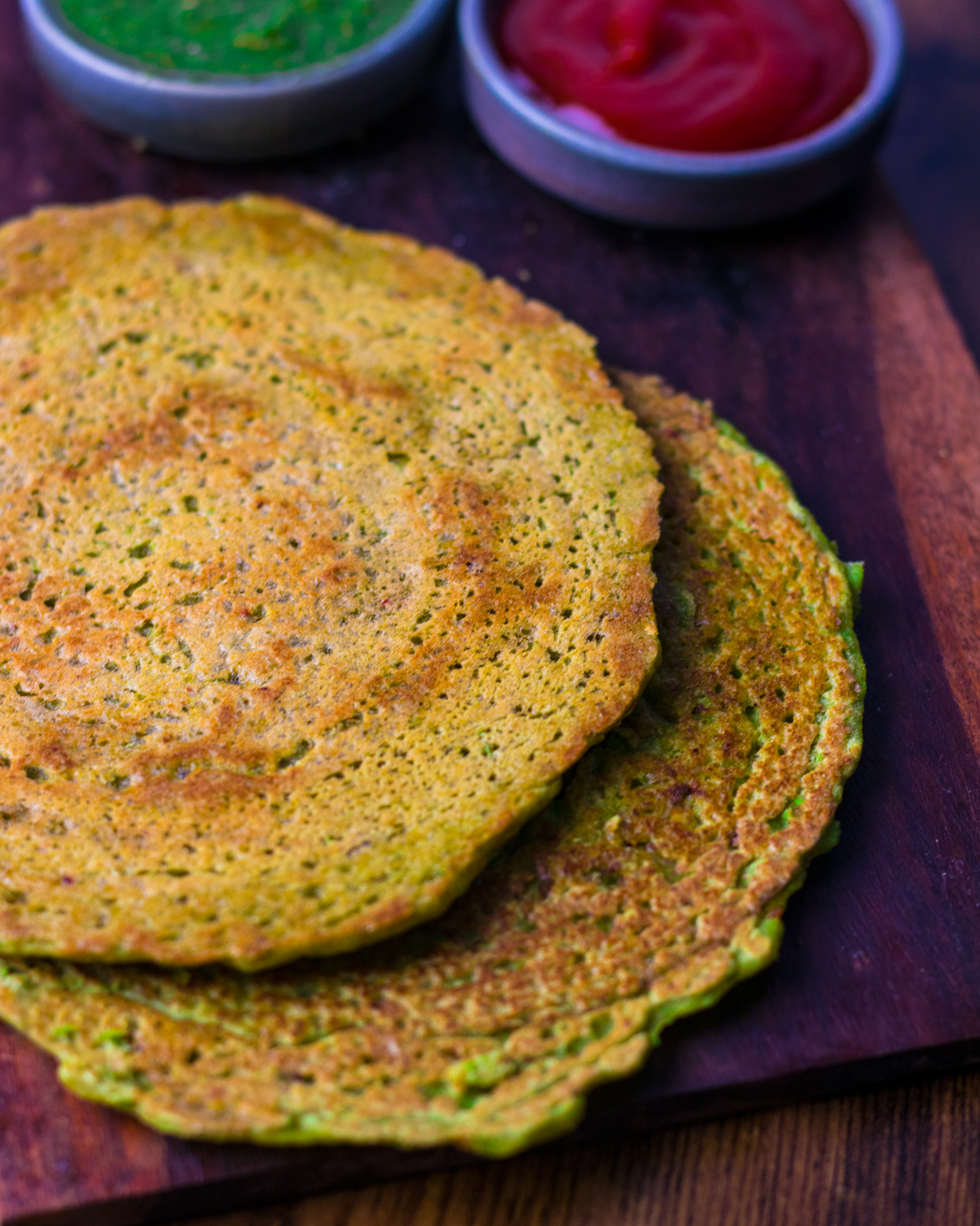 - Repeat with remaining batter. Serve hot with green chutney or yogurt.