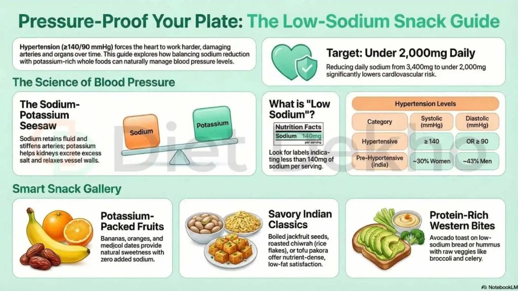 Healthy snacks for BP patients focus on low-sodium, high-potassium ingredients like roasted makhana, sprouts chaat, and fresh fruits. These options help regulate fluid balance and relax blood vessels. Prioritizing whole grains, nuts, and seeds over processed namkeens can significantly lower blood pressure levels while providing sustained energy for busy professionals and homemakers.