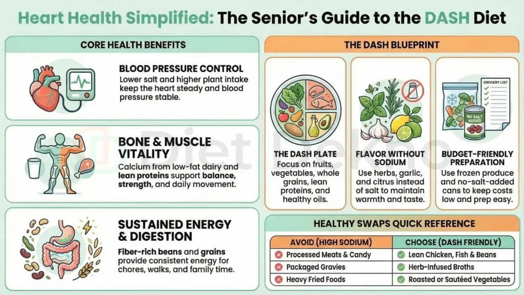 The ideal BP diet for Seniors focuses on reducing daily sodium to under 1,500 mg while increasing potassium-rich, easy-to-chew foods. Specifically, incorporating Indian staples like moong dal khichdi, ragi porridge, and bottle gourd (lauki) help regulate blood pressure naturally. This approach combines the global DASH framework with ICMR-NIN 2024 standards for optimal geriatric heart health.
