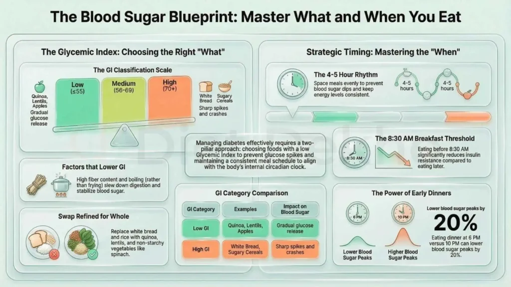 Not all carbohydrates are created equal. We measure their impact using the Glycemic Index (GI). This scale ranks how quickly a food raises your blood sugar compared to pure glucose.
