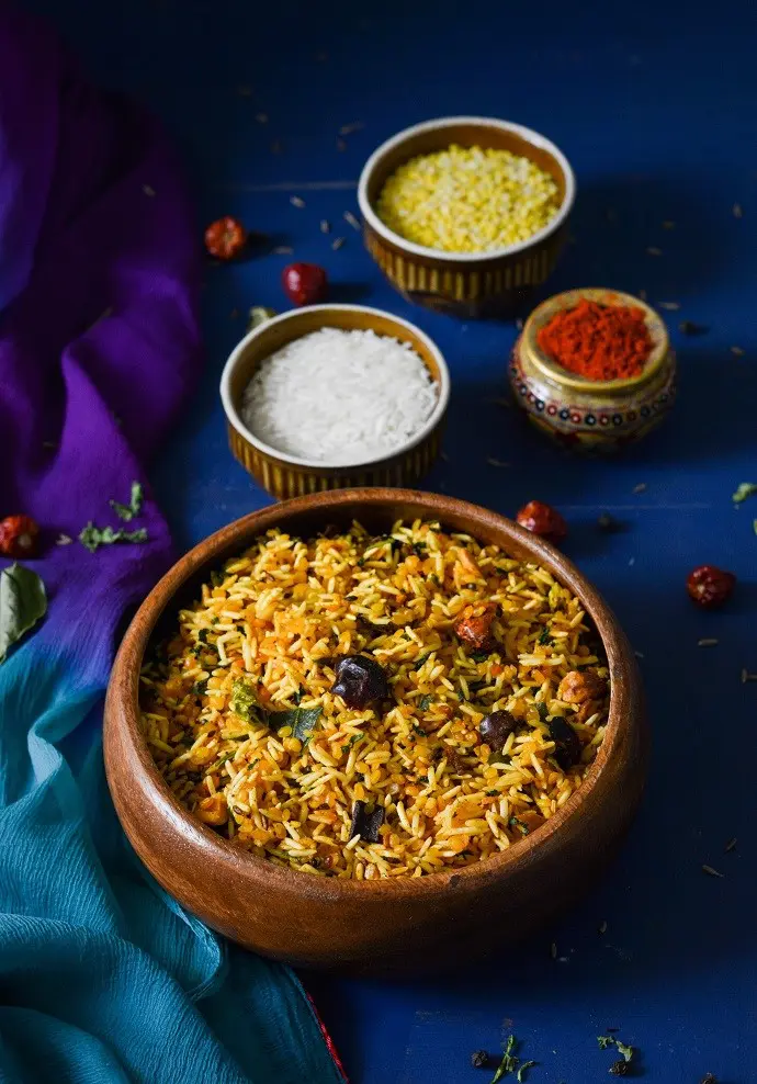5. Once everything cools, mix rice, dal and the spice mix together.