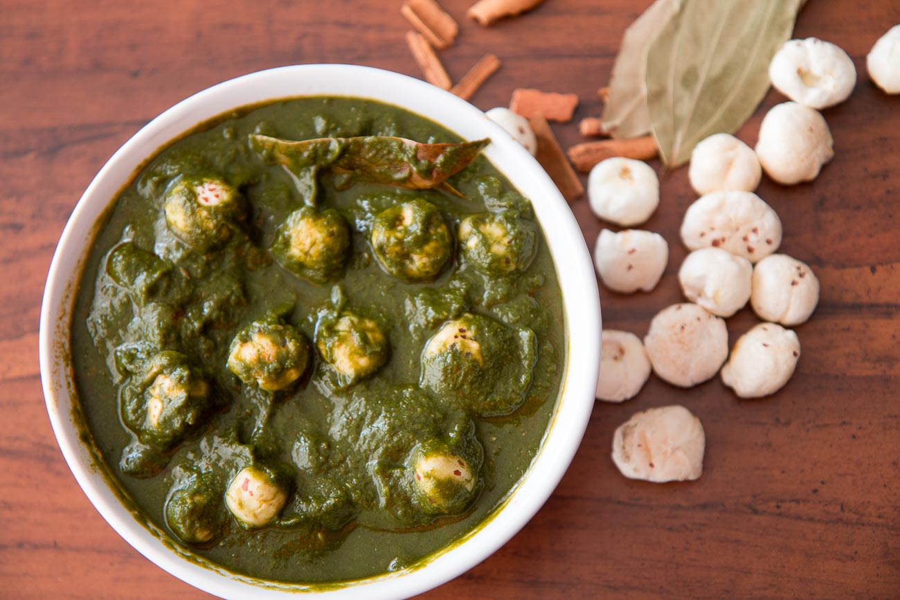 A healthy Indian spinach and fox-nut gravy — nutritious, easy to cook and perfect as a side or light meal.