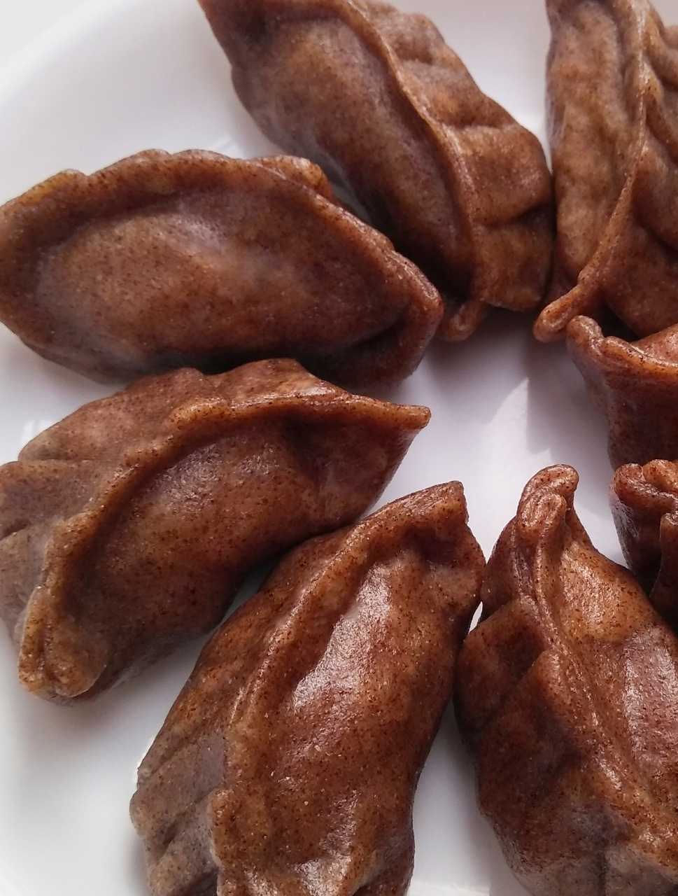 - Place a spoonful of filling in the center, fold, and shape the momos.