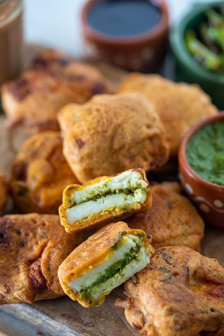 Easy stuffed paneer pakoda made with a light besan batter. A healthier version, air-fried or shallow-fried for guilt-free snacking.