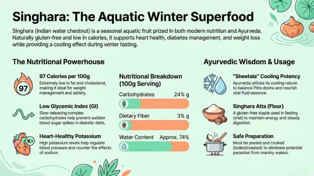 Traditional Indian medicine has praised Singhara for centuries. In Ayurveda, it is considered a “cooling” food. This helps balance out the heavy, spicy meals we often eat in winter.